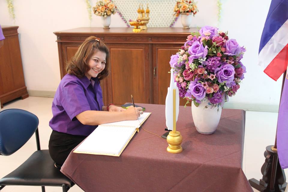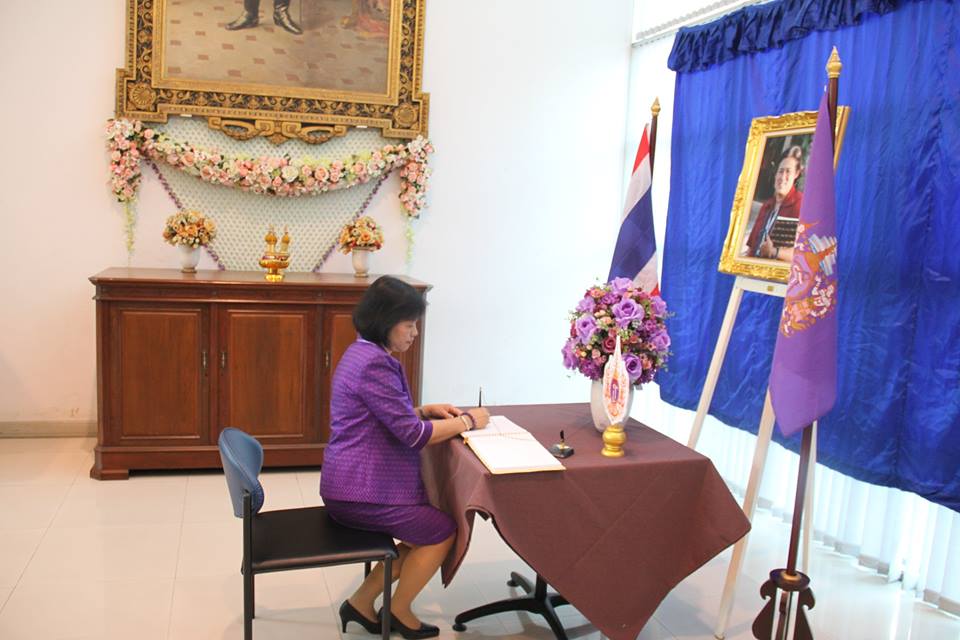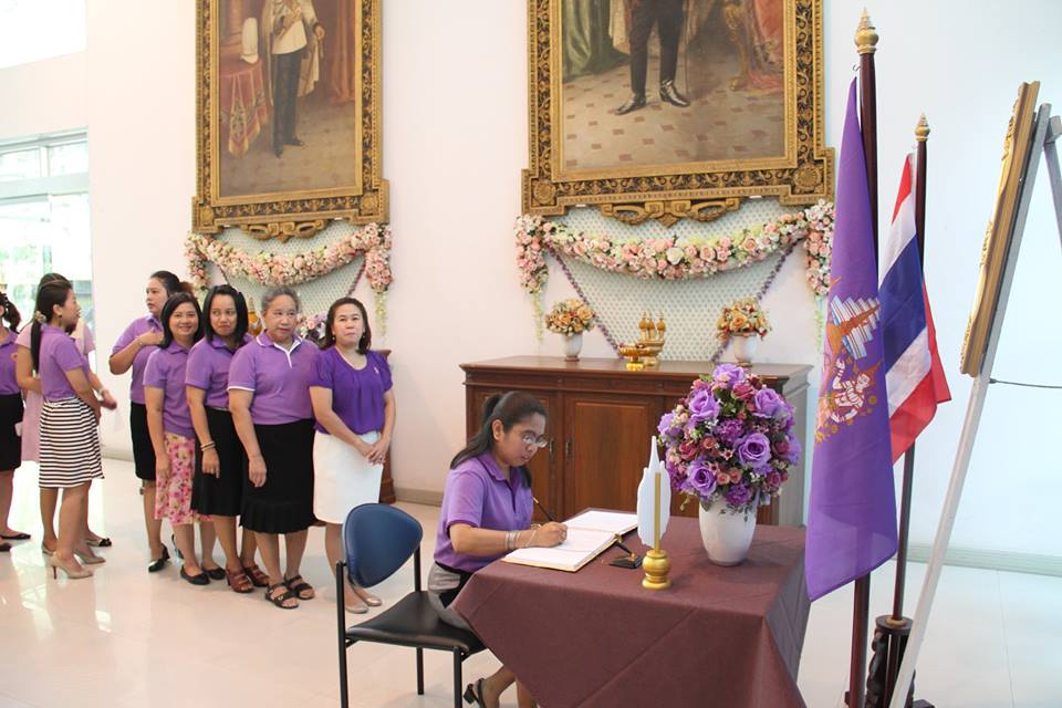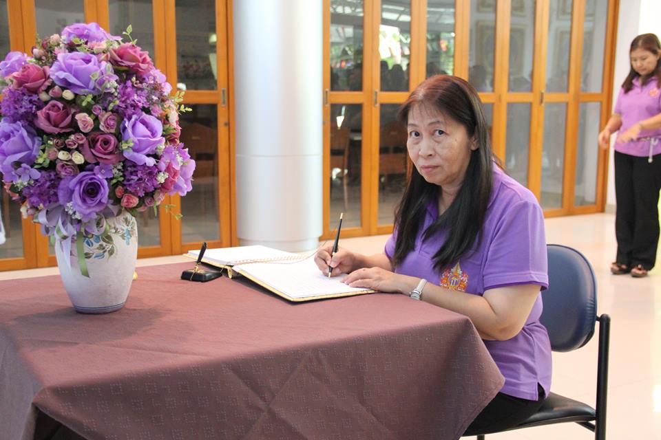 ราชบัณฑิต ภาคีสมาชิก ผู้บริหาร ข้าราชการ และเจ้าหน้าที่ของสำนักงานราชบัณฑิตยสภา ร่วมลงนามถวายพระพรเฉลิมพระเกียรติสมเด็จพระเทพรัตนราชสุดาฯ สยามบรมราชกุมารี ในโอกาสฉลองพระชนมายุ ๕ รอบ ๒ เมษายน ๒๕๕๘ ณ สำนักงานราชบัณฑิตยสภา