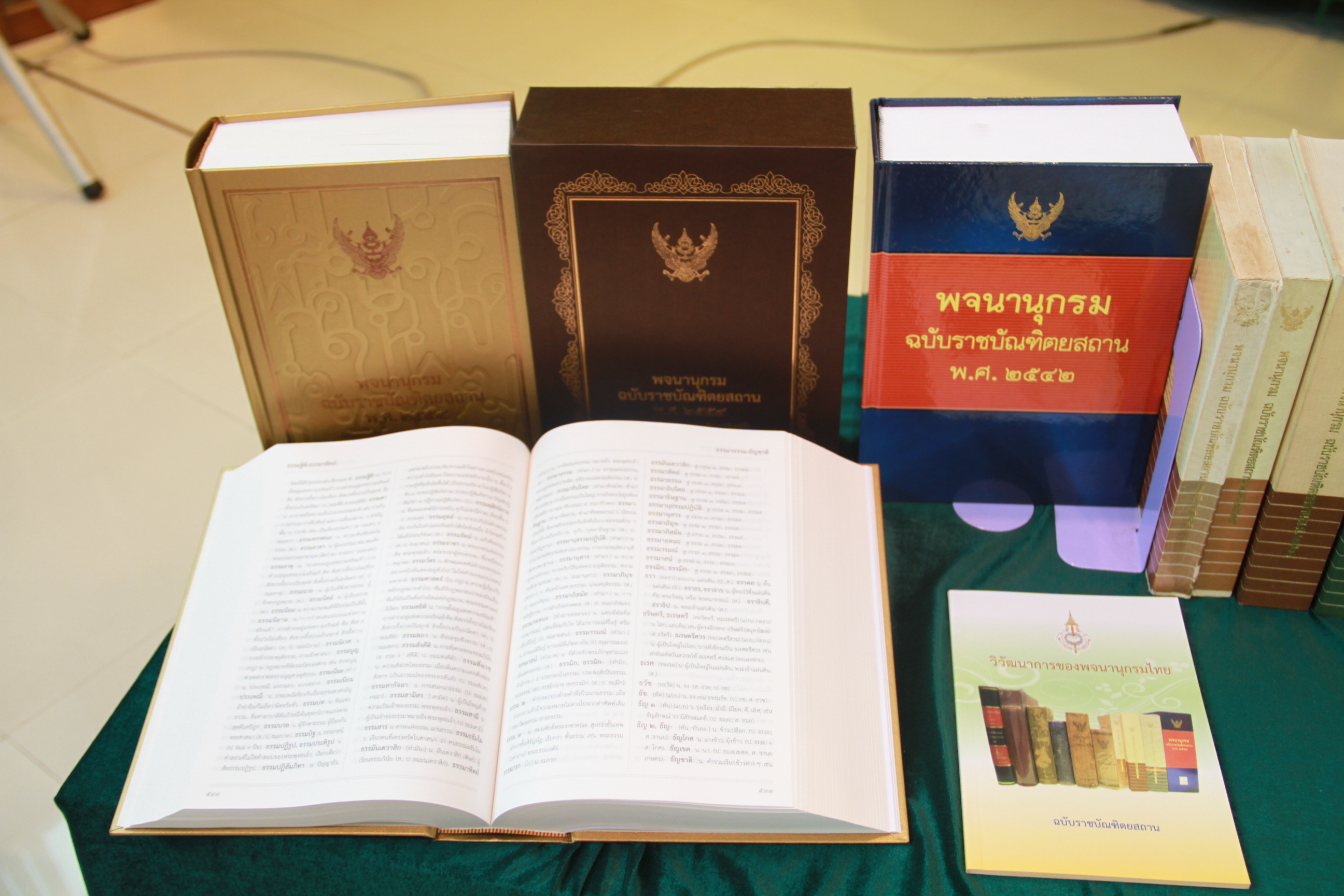 “พจนานุกรม ฉบับราชบัณฑิตยสถาน พ.ศ. ๒๕๕๔” เป็นหนังสือที่จัดพิมพ์ขึ้นเพื่อเฉลิมพระเกียรติพระบาทสมเด็จพระเจ้าอยู่หัว เนื่องในโอกาสพระราชพิธีมหามงคลเฉลิมพระชนมพรรษา ๗ รอบ ๕ ธันวาคม ๒๕๕๔ เป็นหนังสือพจนานุกรมที่มีประกาศสำนักนายกรัฐมนตรี เรื่อง ระเบียบการใช้ตัวสะกด เพื่อให้ทางราชการและสถาบันการศึกษามีแบบมาตรฐานสำหรับใช้ในการเขียนหนังสือไทยให้เป็นระเบียบเดียวกัน ซึ่งจะก่อให้เกิดเอกภาพในด้านภาษาอันเป็นวัฒนธรรมและเอกลักษณ์ของชาติส่วนหนึ่ง ในเล่มได้เก็บคำศัพท์ทั่วไปที่มีใช้ในภาษาไทยตลอดจนศัพท์สาขาวิชาต่าง ๆ และที่สำคัญได้เก็บศัพท์ที่พระบาทสมเด็จพระเจ้าอยู่หัวทรงใช้ในการพัฒนาเรื่องดิน น้ำ ป่าไม้ พร้อมทั้งให้ความหมายของคำ การจัดพิมพ์หนังสือฉบับนี้ได้รับงบประมาณสนับสนุนจากรัฐบาลให้จัดพิมพ์แจกสถานศึกษาทุกระดับ หน่วยงานราชการ ตลอดจนคณะรัฐมนตรี สมาชิกสภาผู้แทนราษฎร สมาชิกวุฒิสภา และสื่อมวลชน