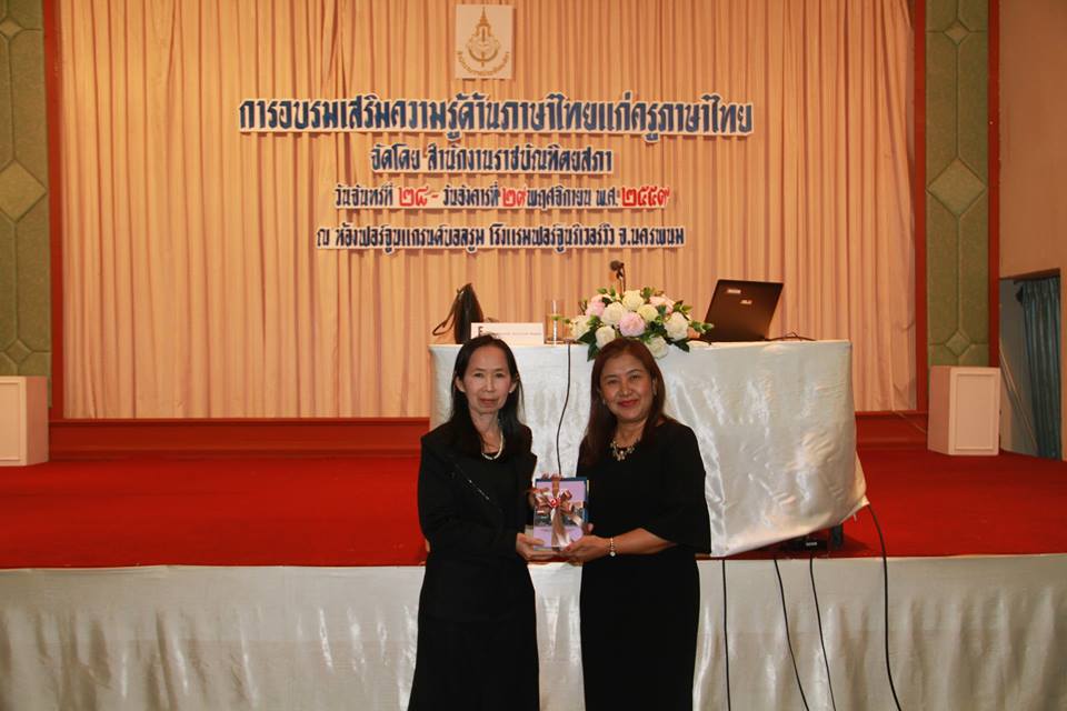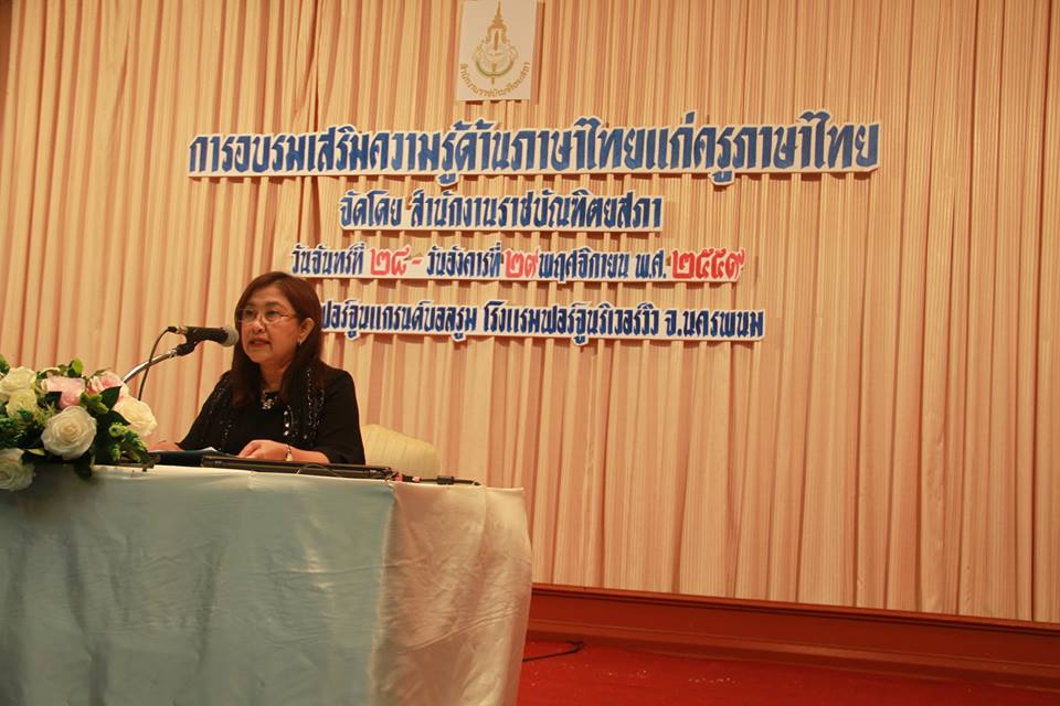 เมื่อวันที่ ๒๘ พฤศจิกายน ๒๕๕๙ เวลา ๘.๔๕ น. นางนัยนา วราอัศวปติ รองเลขาธิการราชบัณฑิตยสภา เป็นประธานเปิดการอบรมเสริมความรู้ด้านภาษาไทยแก่ครูภาษาไทย ณ ห้องฟอร์จูนแกรนด์บอลรูม โรงแรมฟอร์จูน ริวเวอร์วิว อำเภอเมืองฯ จังหวัดนครพนม ซึ่งสำนักงานราชบัณฑิตยสภาจัดขึ้นเพื่ออบรมเผยแพร่ความรู้เกี่ยวกับภาษาไทยและการใช้ภาษาไทยที่ถูกต้องเหมาะสมให้แก่ครูอาจารย์ผู้สอนภาษาไทยในสถานศึกษาระดับมัธยมศึกษาในเขตพื้นที่ภาคตะวันออกเฉียงเหนือ ระหว่างวันที่ ๒๘-๒๙ พ.ย. ๕๙ ช่วงเช้าของวันที่ ๒๘ พ.ย. ๕๙ มีการบรรยายเรื่อง “เนื้อหาสาระที่จำเป็นสำหรับการสอนภาษาไทย” โดย รองศาสตราจารย์ ดร.นววรรณ พันธุเมธา ราชบัณฑิต สำนักศิลปกรรม ช่วงบ่าย มีการบรรยายเรื่อง “เป้าหมายและกลวิธีการสอนวรรณคดีไทย” โดย ศาสตราจารย์ ดร.ชลดา เรืองรักษ์ลิขิต ภาคีสมาชิก สำนักศิลปกรรม