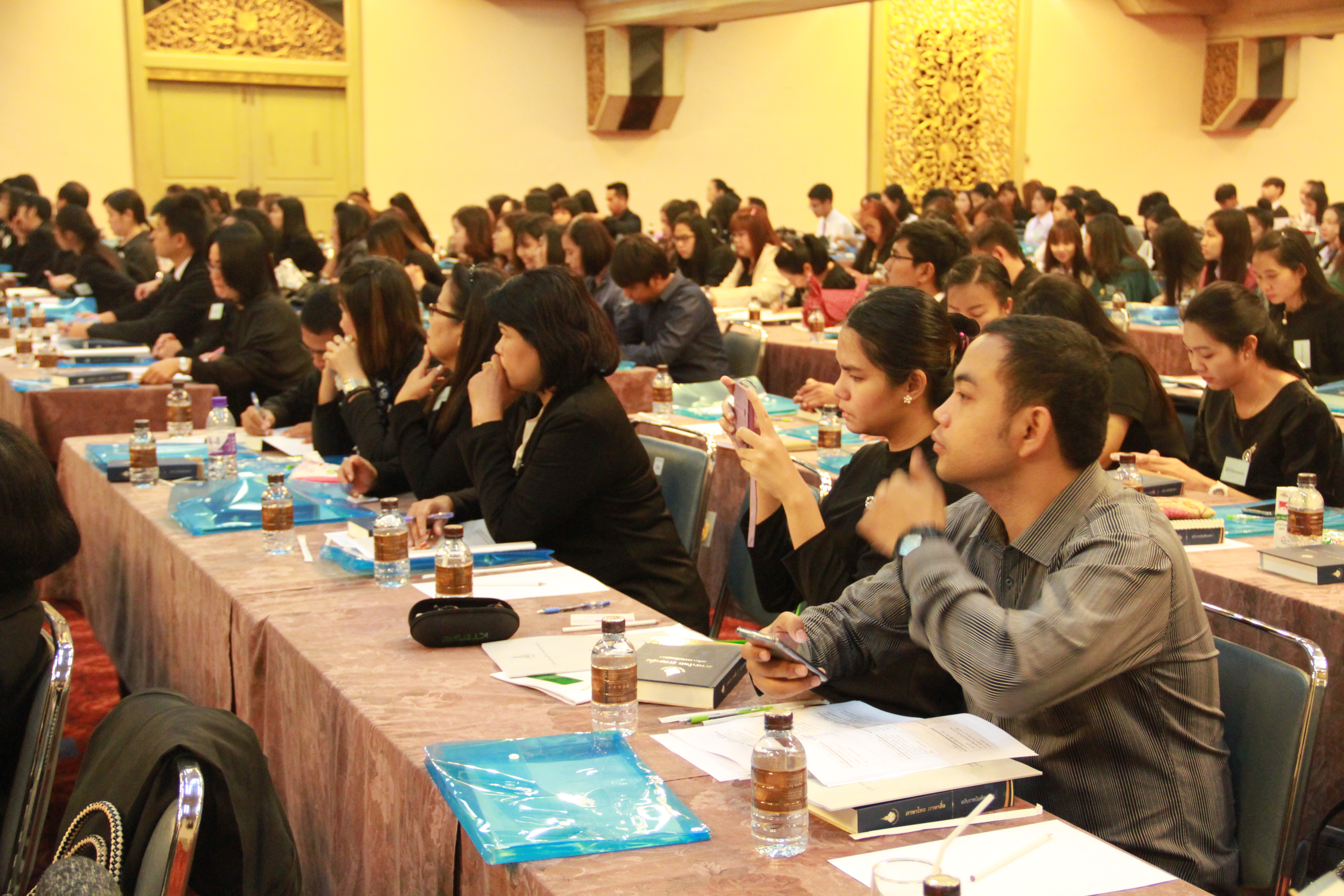 วันแรก (๒๒ ธ.ค. ๕๙) ภาคเช้า มีการบรรยายเรื่อง “เนื้อหาสาระที่จำเป็นสำหรับการสอนภาษาไทย” โดย รศ. ดร.นววรรณ พันธุเมธา ราชบัณฑิต สำนักศิลปกรรม ภาคบ่าย บรรยายเรื่อง “เป้าหมายและกลวิธีการสอนวรรณคดีไทย” โดย ศ. ดร.ชลดา เรืองรักษ์ลิขิต ภาคีสมาชิก สำนักศิลปกรรม