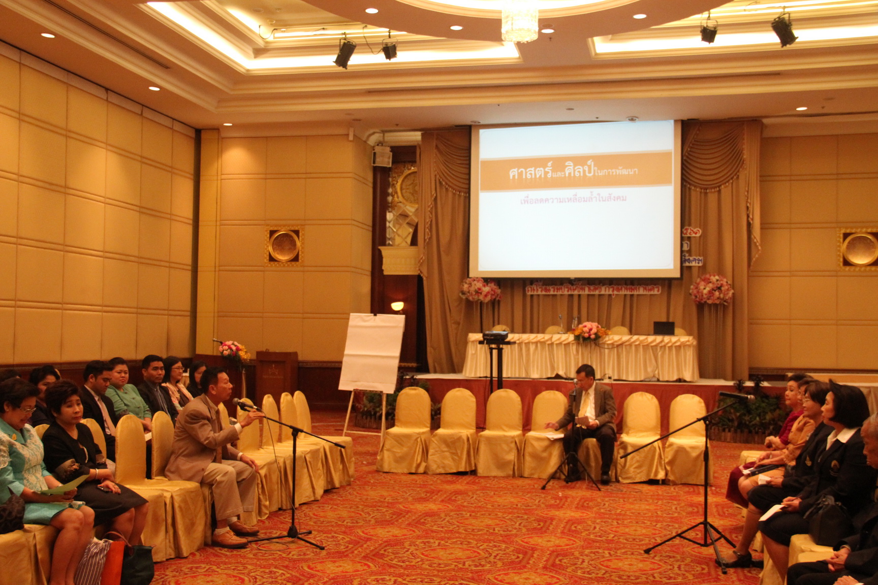 การประชุมวิชาการในวันนี้ ในภาคเช้า นายสุวพันธุ์ ตันยุวรรธนะ ได้แสดงปาฐกถาพิเศษ เรื่อง “นโยบายของรัฐบาลในการสร้างความเป็นธรรมเพื่อลดความเหลื่อมล้ำในสังคม” และมีการอภิปรายเรื่อง “ศาสตร์และศิลป์ในการพัฒนาเพื่อลดความเหลื่อมล้ำในสังคม” โดยราชบัณฑิตและภาคีสมาชิกของสำนักธรรมศาสตร์และการเมือง ประกอบด้วย ศ. ดร.สมหวัง พิธิยานุวัฒน์ ศ. ดร.ผาสุก พงษ์ไพจิตร ศ.สุกัญญา สุดบรรทัด รศ. ดร.ดารณี อุทัยรัตนกิจ โดยมี ศ. ดร.สมบูรณ์ สุขสำราญ เป็นผู้ดำเนินการอภิปราย ส่วนในภาคบ่ายเป็นการเสวนาเพื่อแลกเปลี่ยนเรียนรู้ร่วมกันระหว่างวิทยากรและผู้เข้าร่วมการประชุม เพื่อจัดทำข้อเสนอแนวทางการลดความเหลื่อมล้ำในสังคมไทย