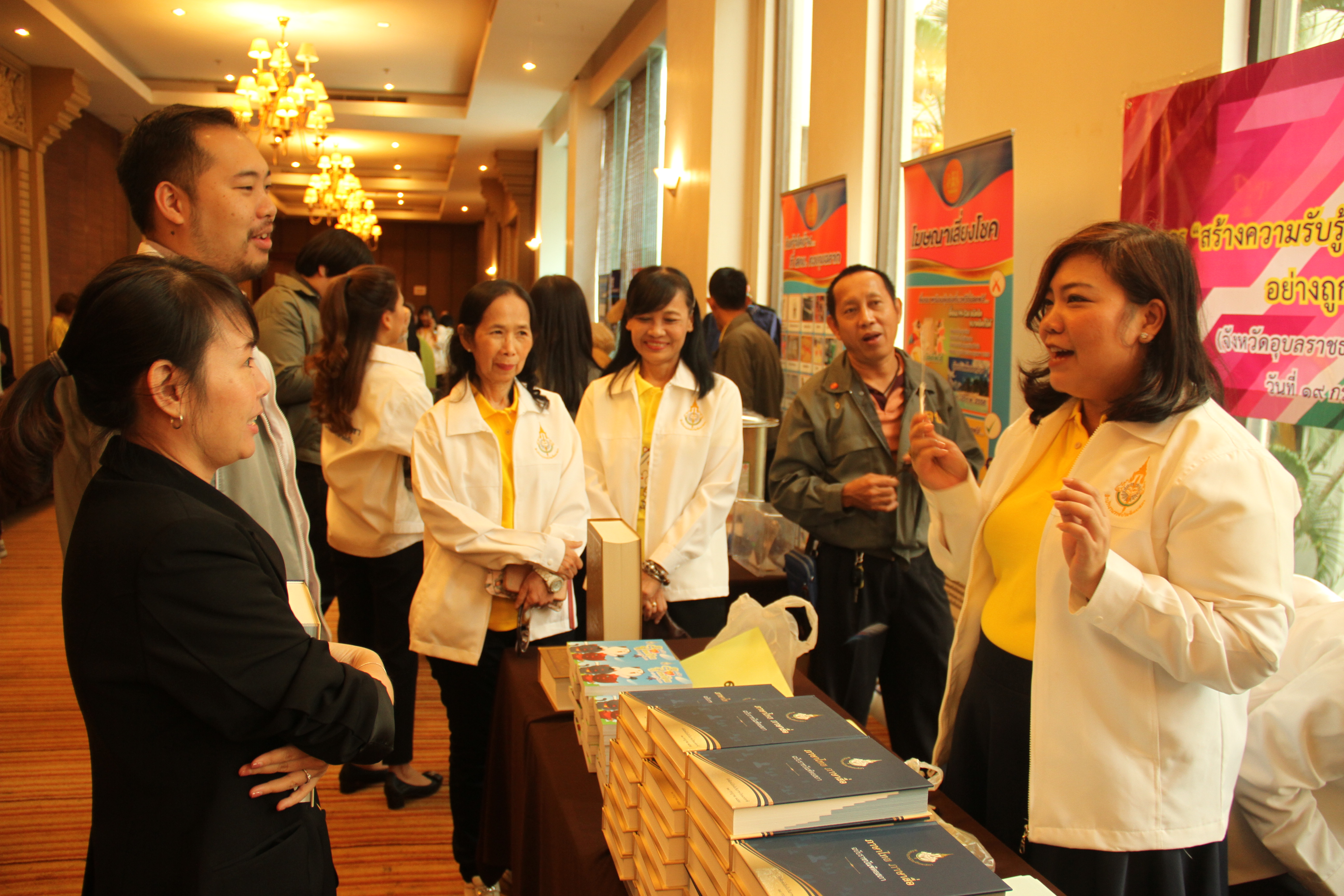 ช่วงเช้า เวลา ๙.๐๐-๑๒.๐๐ น. คณะของสำนักงานราชบัณฑิตยสภาได้ร่วมการประชุมเชิงปฏิบัติการติดตามการดำเนินงานกองทุนหมู่บ้านและชุมชนเมือง และจัดบูทนิทรรศการสร้างความรู้ความเข้าใจเรื่องการใช้ภาษาไทยที่ถูกต้องเหมาะสม ณ โรงแรมลายทอง ตำบลในเมือง อำเภอเมืองฯ จังหวัดอุบลราชธานี ช่วงบ่ายเวลา ๑๓.๐๐-๑๔.๕๐ น. ร่วมจัดบูทนิทรรศการฯ ณ พื้นที่ตรวจเยี่ยมกองทุนหมู่บ้านสร้างทราย หมู่ที่ ๒ ตำบลปทุม อำเภอเมืองฯ จังหวัดอุบลราชธานี และเวลา ๑๕.๓๐-๑๗.๐๐ น. ร่วมเดินทางตรวจเยี่ยมและร่วมจัดบูทนิทรรศการฯ ณ โรงผลิตน้ำดื่มชุมชนกองทุนหมู่บ้านโพนขาว หมูที่ ๑๐ ตำบลจิกดู่ อำเภอหัวตะพาน จังหวัดอำนาจเจริญ ทั้งนี้ กิจกรรมของสำนักงานราชบัณฑิตยสภาที่จัดขึ้นได้รับความสนใจจากประชาชนผู้เข้าร่วมงานเป็นอย่างดี.