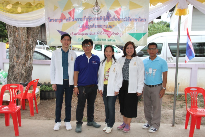 ในการนี้ สำนักงานราชบัณฑิตยสภาได้จัดกิจกรรมเพื่อสร้างความรับรู้ความเข้าใจในเรื่องการใช้ภาษาไทยอย่างถูกต้องเหมาะสม โดยจัดนิทรรศการและเชิญชาวบ้านร่วมกิจกรรมถาม-ตอบการใช้ภาษาไทย ณ ที่ทำการกองทุนหมู่บ้านผ่านศึก ๔ หมู่ที่ ๑๒ ตำบลบ้านตาล อำเภอเมืองฯ จังหวัดอุดรธานี และสถาบันการเงินชุมชนหาดสวรรค์ ตำบลหนองบัว อำเภอเมืองฯ จังหวัดหนองบัวลำภู และได้เยี่ยมชมโครงการตลาดประชารัฐและร้านค้าประชารัฐของทั้งสองกองทุน ตลอดจนร่วมชมการแข่งขันฟุตบอลกองทุนหมู่บ้านและชุมชนเมือง ณ สถาบันการเงินชุมชนหาดสวรรค์