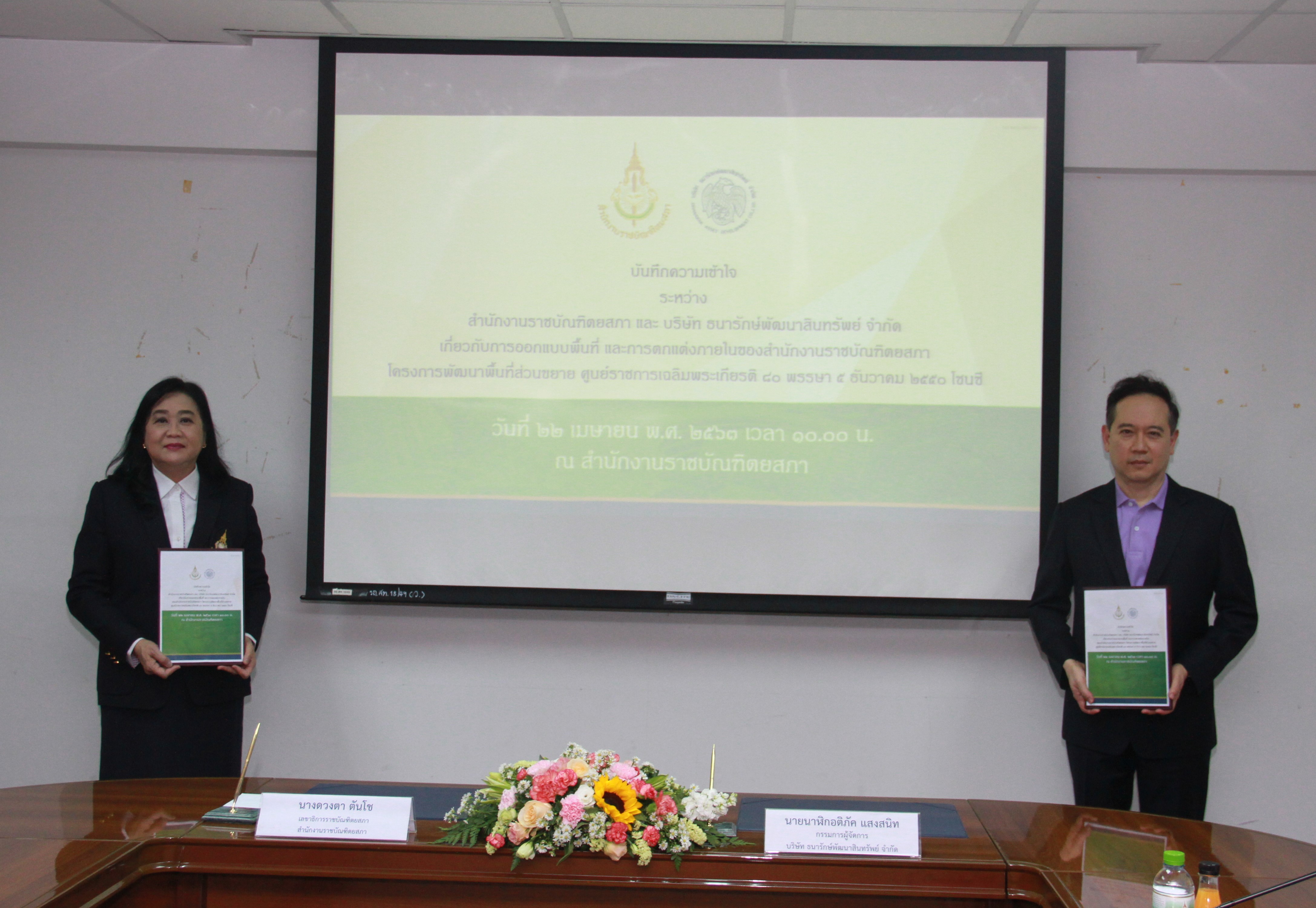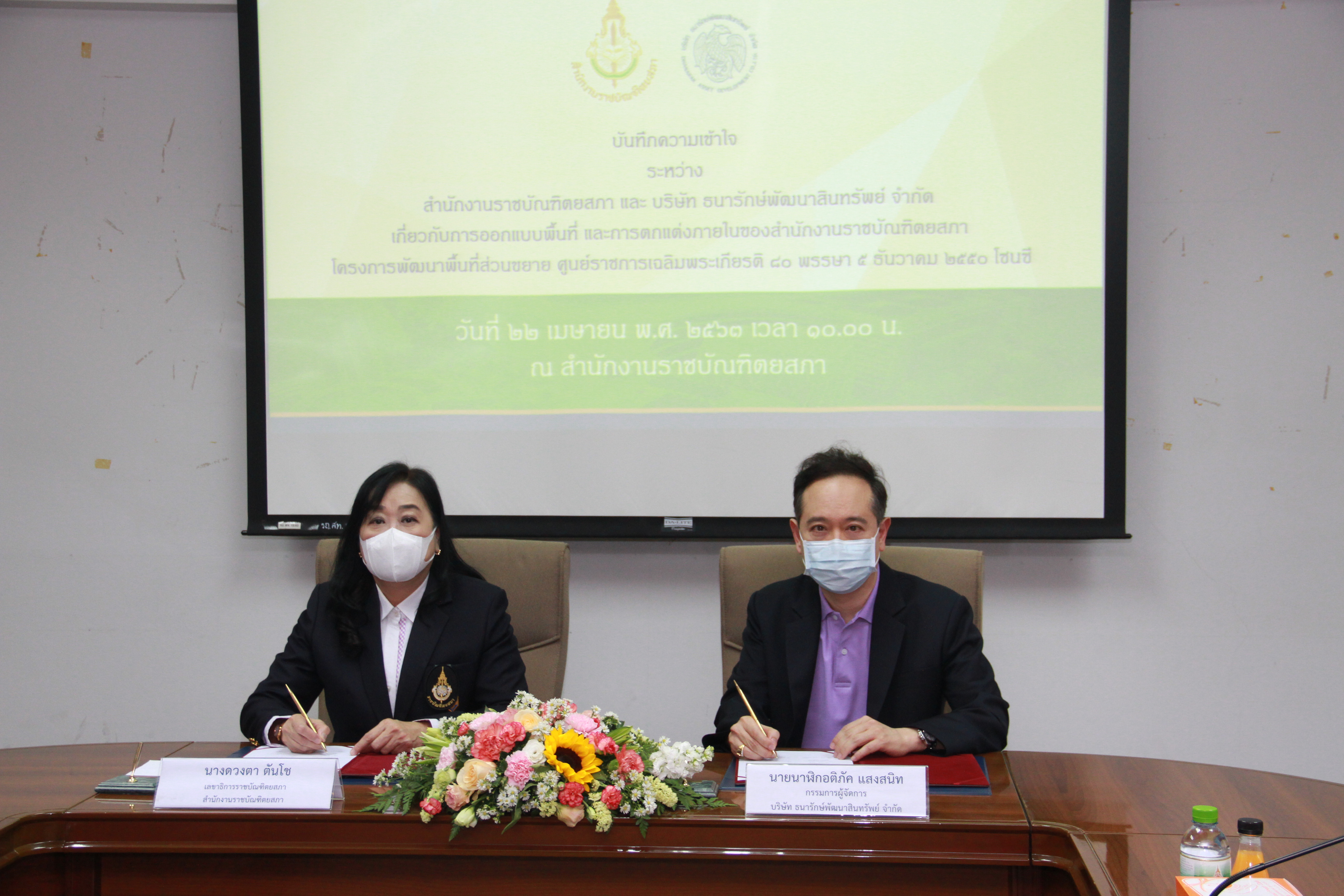 วันนี้ (๒๒ เม.ย. ๖๓) เวลา ๙.๕๙ น. ณ ห้องประชุมชั้น 4 สำนักงานราชบัณฑิตยสภา ดร.ดวงตา ตันโช เลขาธิการราชบัณฑิตยสภา ลงนามบันทึกความเข้าใจร่วมกับ ดร.นาฬิกอติภัค แสงสนิท กรรมการผู้จัดการ บริษัท ธนารักษ์พัฒนาสินทรัพย์ จำกัด เกี่ยวกับการออกแบบพื้นที่ และการตกแต่งภายในของสำนักงานราชบัณฑิตยสภาแห่งใหม่ ภายในโครงการพัฒนาพื้นที่ส่วนขยาย อาคารศูนย์ราชการเฉลิมพระเกียรติ ๘๐ พรรษา ๕ ธันวาคม ๒๕๕๐ โซนซี