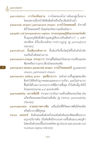 P permanent stream; perennial stream ธารน�้าไหลตลอดปี ดู perennial