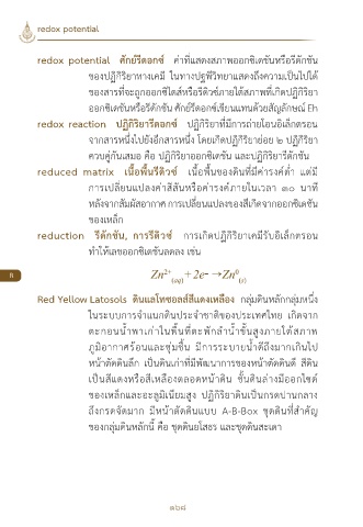 redox potential ศักย์รีดอกซ์ ค่าที่แสดงสภาพออกซิเดชันหรือรีดักชัน