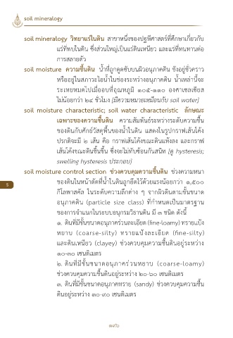 soil moisture ความชื้นดิน น�้าที่ถูกดูดซับบนผิวอนุภาคดิน ขังอยู่ชั่วคราว