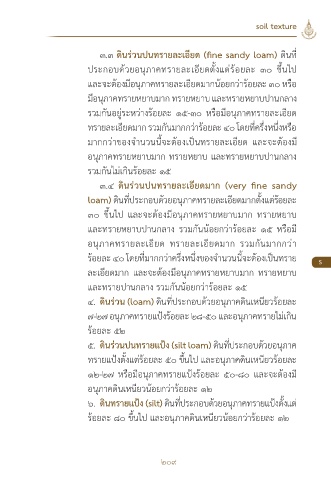 ๔. ดินร่วน (loam) ดินที่ประกอบด้วยอนุภาคดินเหนียวร้อยละ
