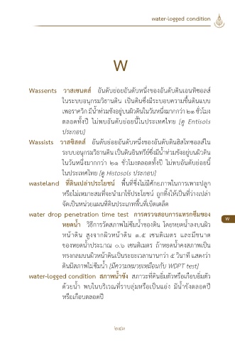 water-logged condition สภาพน�้าขัง สภาวะที่ดินอิ่มตัวหรือเกือบอิ่มตัว
