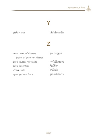 zymogenous flora Y yield curve เส้นโค้งผลผลิต Z zero point of charge; จุดประจุศูนย์ point of zero net charge zero tillage; no-tillage การไม่ไถพรวน zeta potential ศักย์ซีตา Zonal soils ดินโซนัล zymogenous flora จุลินทรีย์โตเร็ว 327
