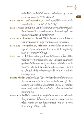 basin แอ่ง ๑. พื้นที่ตำ่าขนาดต่าง ๆ บนพื้นราบซึ่งมีการระบายนำ้าทางใต้ดิน