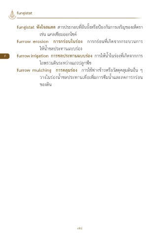 F furrow irrigation การชลประทานแบบร่อง การให้นำ้าในร่องที่เกิดจากการ
